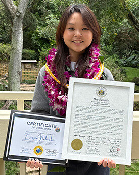 Cassie Nakaoka is a sophomore at Aoga Maualuga a Moanalua, where she is a part of the Moanalua High School Music Department, participating in both the school’s symphony orchestra and the marching band, and serves as the Class of 2028 vice president. She enjoys being active, whether it be studying in free time, fulfilling her duties in class council, or helping wherever she is needed. She aspires to become a physician, specializing in nutrition/dietetics, and hopes to attend the John A. Burns School of Medicine.