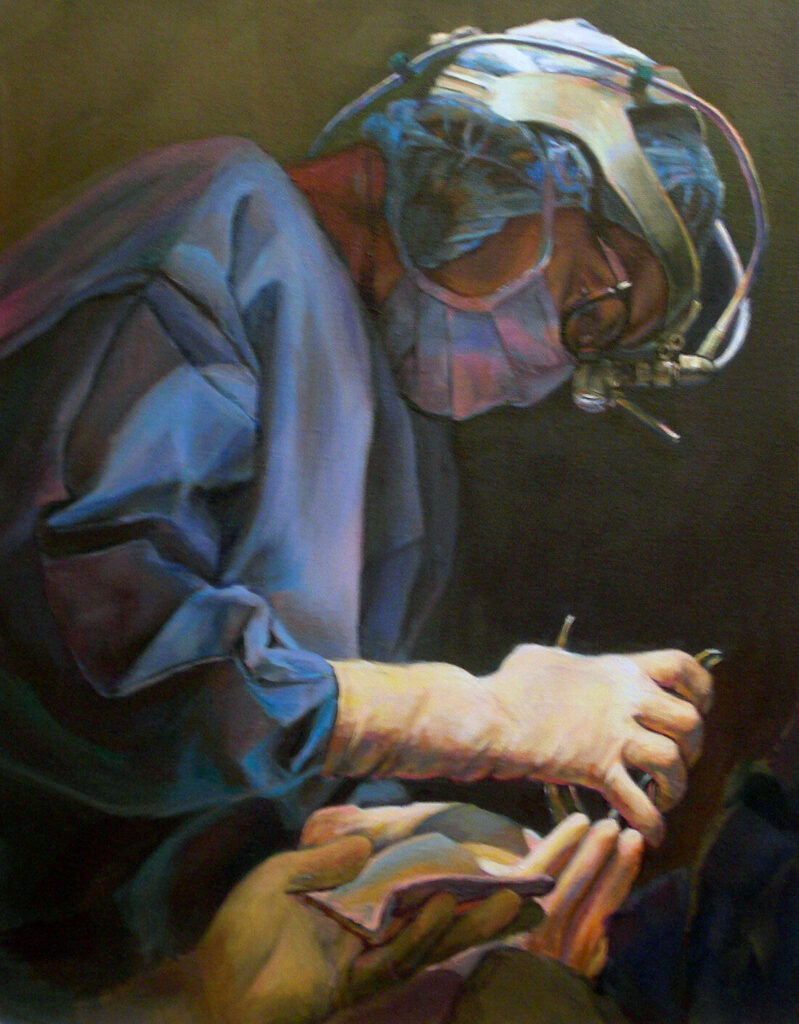 Midway through her career, while serving as chief of neurosurgery at a Level I trauma center in the Bronx, Ko realized something was missing. On a whim, she signed up for a few beginner painting classes at a local YMCA—and discovered a whole new passion. That spark eventually led her to earn a master’s degree in representational painting, with a focus on medical art, from the Academy of Art University in 2012.