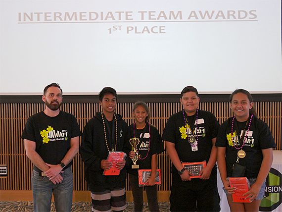 All first place winning team members each received a new Amazon Fire tablet. The top three teams in all divisions were also awarded medals and all participants from the day's event received an official 2016 DimensionU Hawai'i Math Games t-shirt.