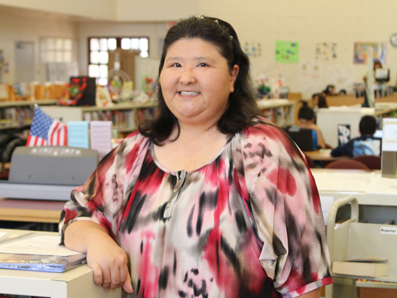 Kapolei Middle School librarian Carolyn Kirio doesn’t view the library as a place with physical limitations. Kirio is using technology to meet the needs of her multi-track school and her efforts garnered her national attention.